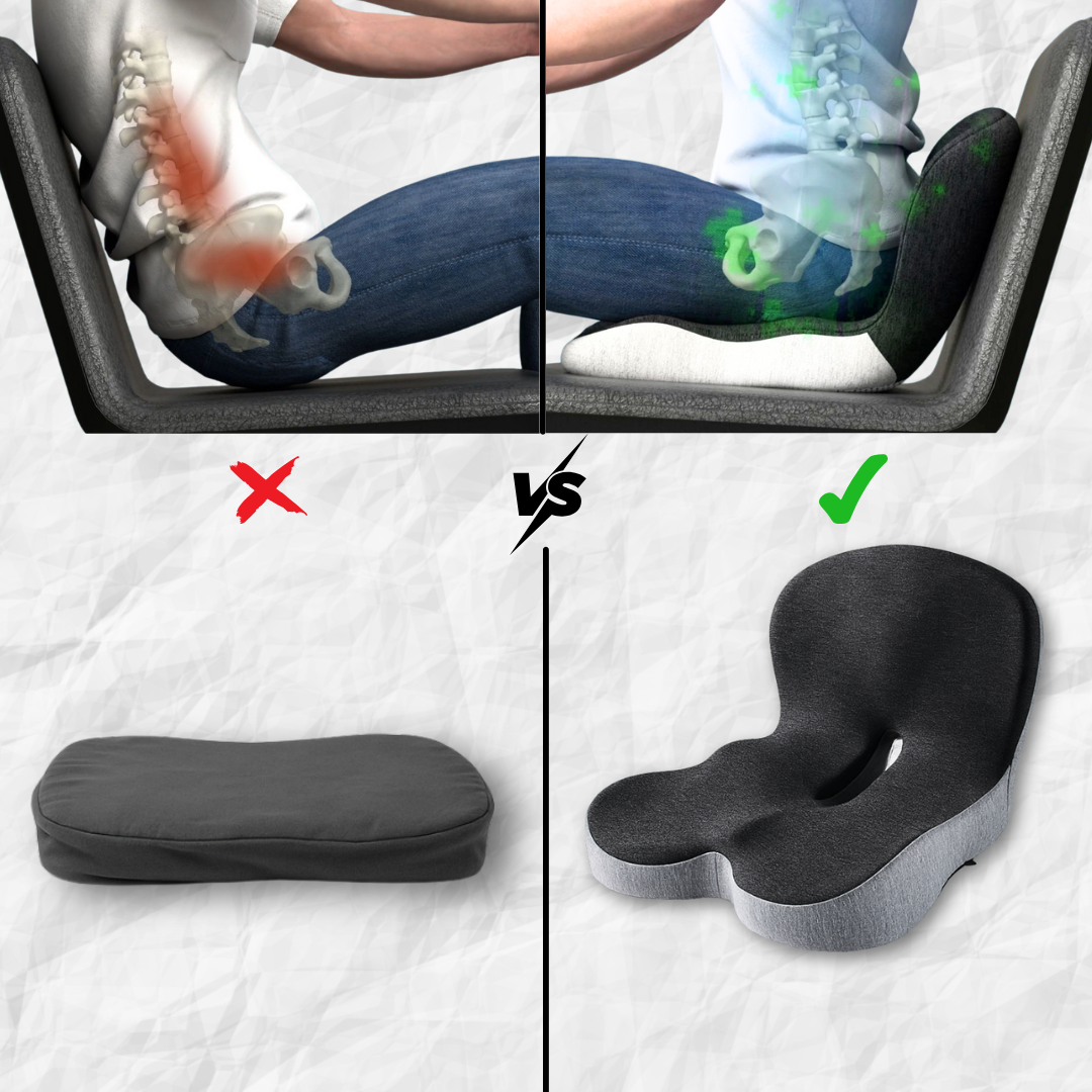 Thin cushions and hard seats force all the pressure into your tailbone and hips. For most people over 50, that means burning pain and stiffness after just 30 minutes.