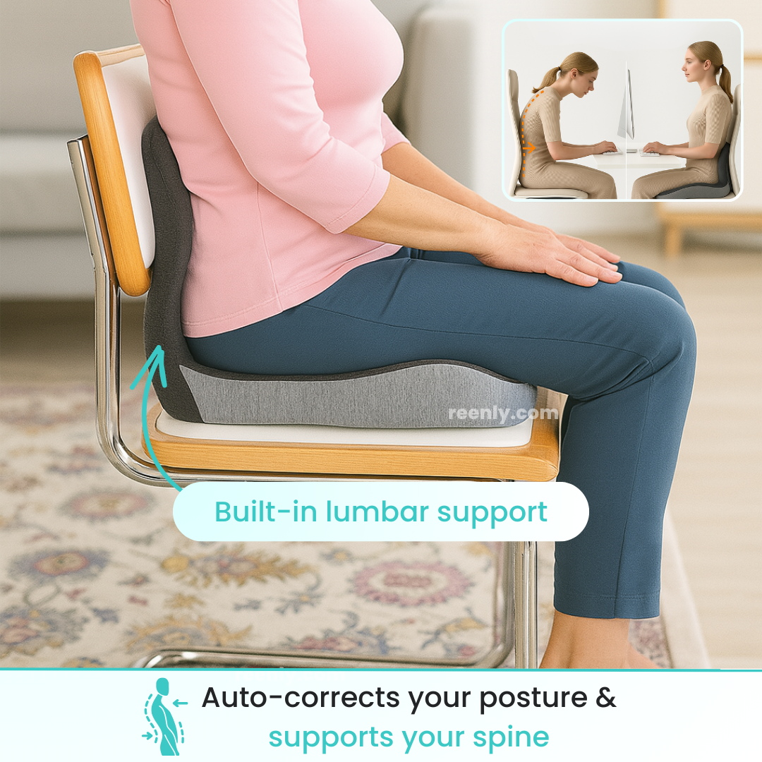 Most chairs punish your body within 30 minutes. Your hips tilt, your spine collapses, and pressure builds on your tailbone and sciatic nerve. That’s why long drives, workdays, or even dinner at the table can leave you sore, stiff, or numb.